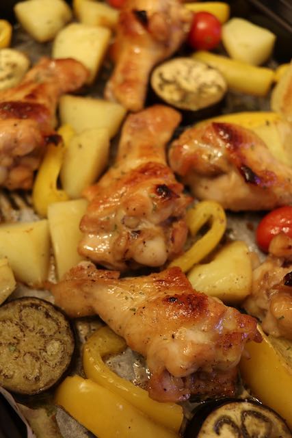 夏野菜をオーブンでじっくり焼くことで甘みが引き出され、手羽元は甘塩っぱく仕上がりました。