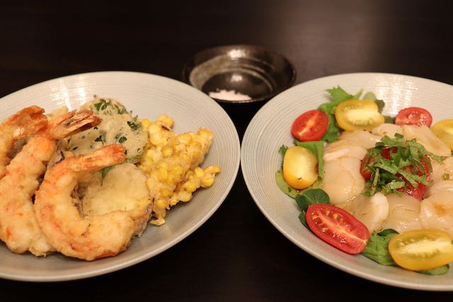 柚子胡椒をきかせたホタテのカルパッチョや、揚げたての天ぷらと合わせてみると、
