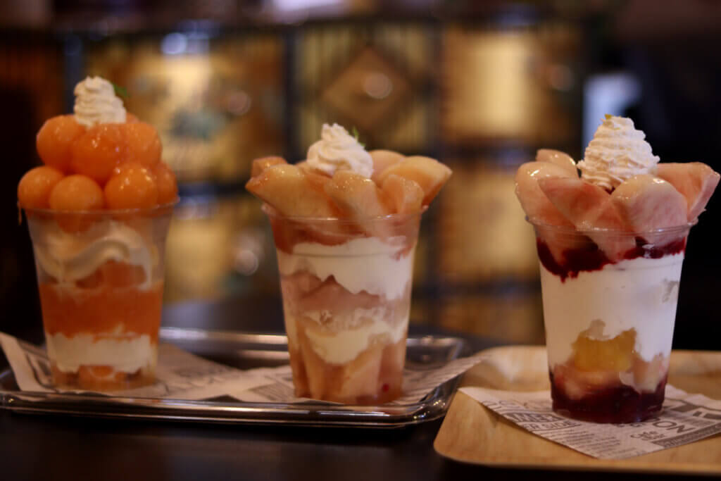 それぞれのパフェにフルーツが惜しみなく使われていて、さらにシャーベットやソースが丁寧に組み合わせられており、まさに“王道パフェ”という印象です。