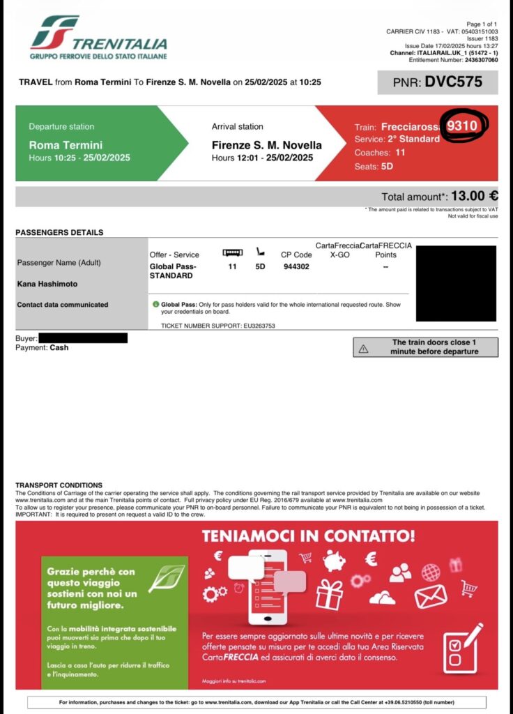 私自身、実際にローマからフィレンツェまで高速列車「フレッチャロッサ」を利用しましたが、日本の駅とは勝手が違う部分もあり、最初は少し戸惑いました。