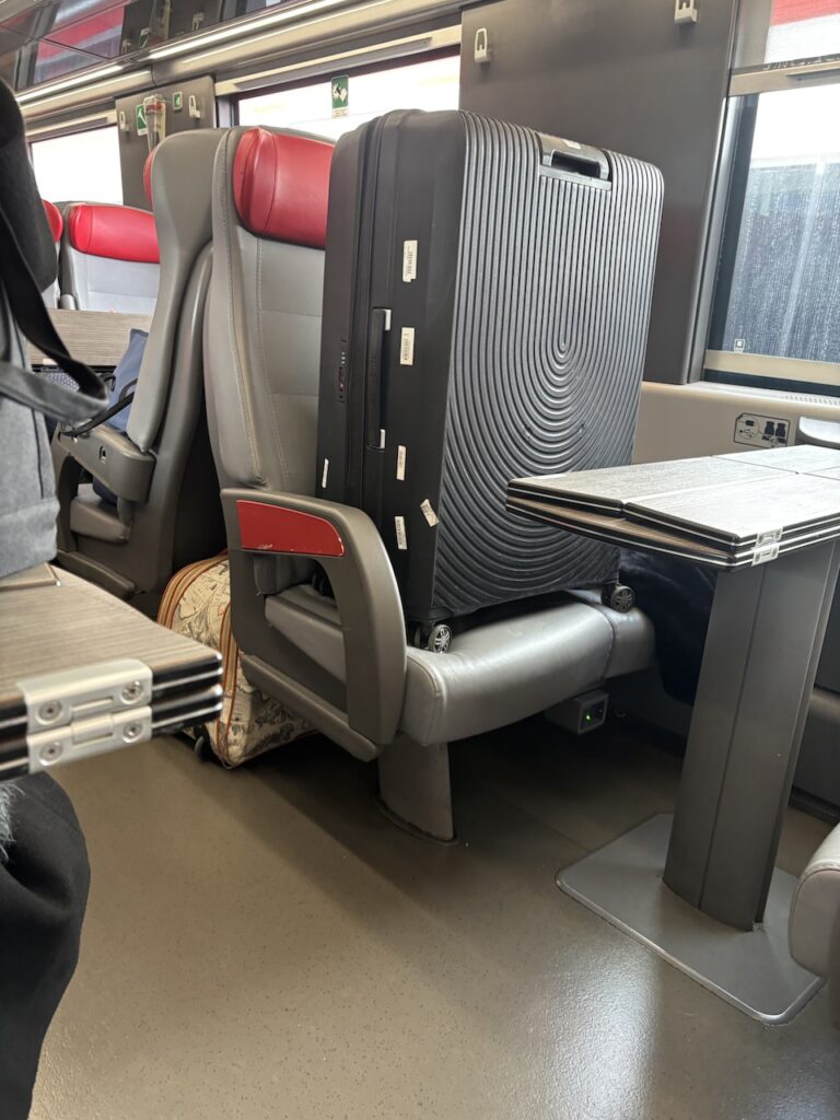 隣に座っていたお姉さんは巨大なスーツケースを座席にドカンと置いてました。